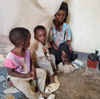 Christins Mann verstarb im Juni letzten Jahres mit Covid. Von einem Tag auf den anderen war sie alleine mit den 3 Kindern und ohne Einkommen. Die älteren 2 Kinder hat sie ihrer Mutter und Tante in die Villages gebracht, da sie nicht wusste, wie sie 4 Mäuler stopfen kann, geschweige denn, wie sie den Kindern weiterhin das Schulgeld bezahlen kann. Die älteren beiden Kinder gehen bis heute nicht in die Schule, die Kleine ist in der Schule, jedoch wurde noch nichts von den Schulgebühren bezahlt. Inklusive des kommenden Terms müsste sie 300,000 UGX (ca. 80 €) begleichen. Hanna hat Mitleid mit ihr, deswegen akzeptiert sie es bis anhin, meinte jedoch auch, das ist keine Lösung auf Zeit.